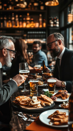 A group of people drinking beer at the pub's brewery restaurant AI generated