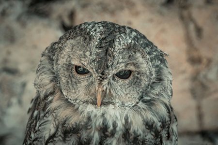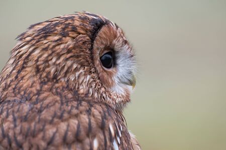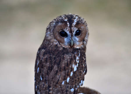 Close up portrait of a Tawny Owl, strix aluco, at the British Wildlife Centre, Lingfield,Surrey England, United Kingdom