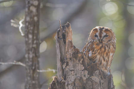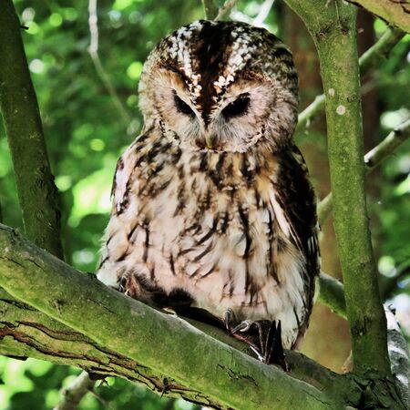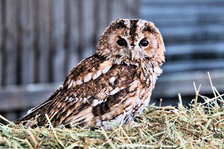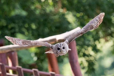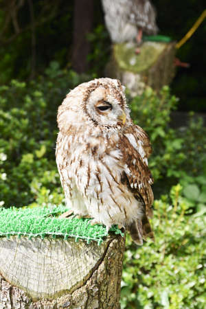tawny owl brown colour at owl's forest zoo. A natural landmark located at the end of the town.