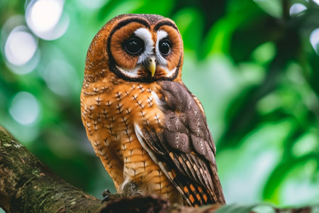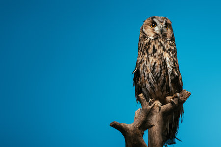Beautiful owl perches on a branch under the moonlight, creating a captivating scene of nocturnal wildlife