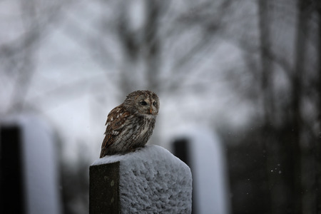 A view of a Tawny Owl on a Post