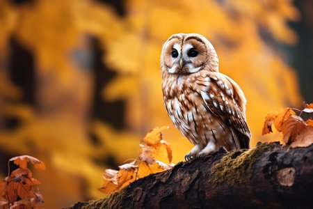 Tawny Owl Strix aluco sitting on a branch in autumn forest Autumn in nature with an owl Ural Owl Strix uralensis sitting on a tree --ar 3:2 --v 5.2 Job ID: 3432d9fa-dc3d-4c19-92dc-13776d8d1102