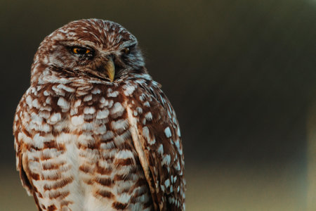 A selective focus shot of a burrowing owl outdoors during daylight