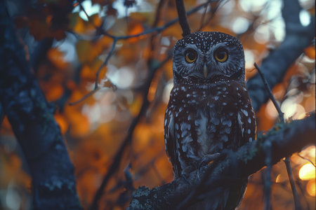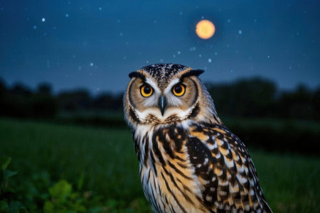 Close-up portrait of a majestic owl with piercing yellow eyes