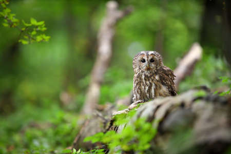 The tawny owl or brown owl - Strix aluco is a stocky, medium-sized owl commonly found in woodlands.