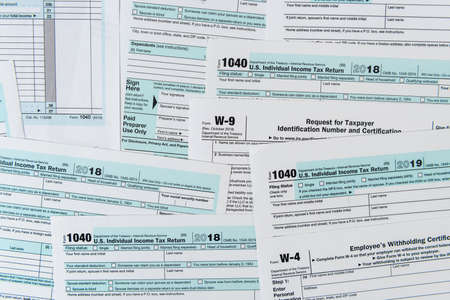 Many different usa tax form. w4 w9 and 1040 form for fill in april. Tax time