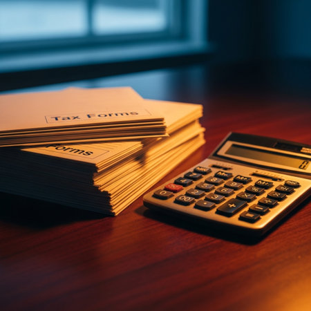 Tax form under US law with culculator on office table desktop