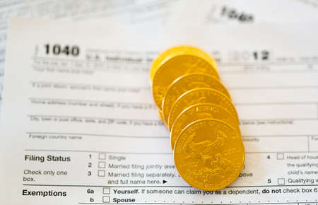Tax form 1040 for tax year 2012 for US individual tax return with gold coins