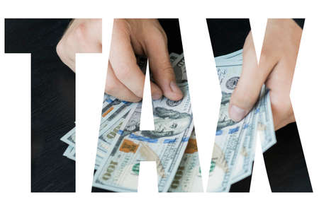 paper money and wooden cubes with the word tax. taxation concept
