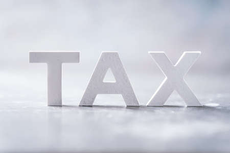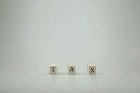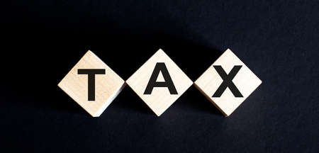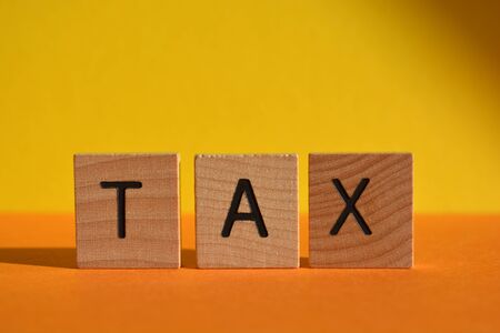 Wood cube with word TAX. Concept of taxes paid by individuals and corporations.