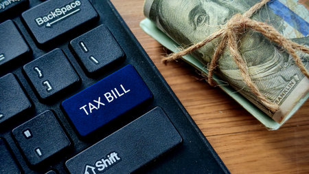 Tax Bill Button on Keyboard with Rolled Money