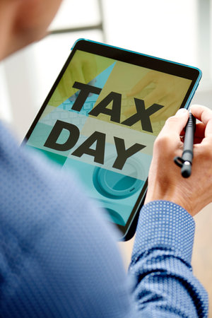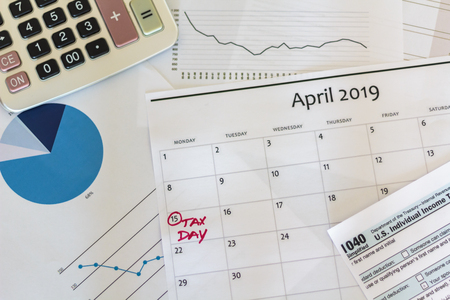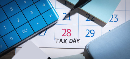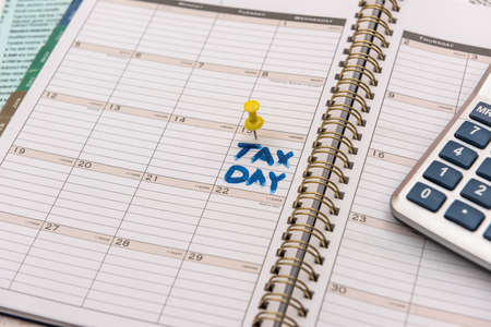 Tax Day write on the calculator on Office Desk.