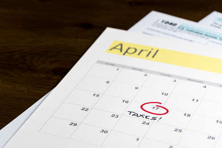 calendar of tax day on 18 april 2017,deadline note tax day wording on calendar.