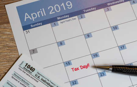 USA tax due date marked on calendar 15 April / tax day concept tax payment Government taxes