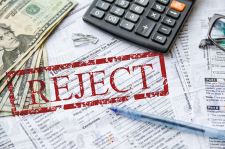 Tax concept. Need help wtite on sticker, coin us, calculator and 1040 american tax form.