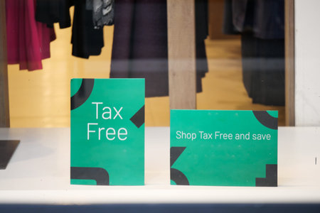 Text Tax on a white sticker with office stationery background. Flat lay on business, finance and development concept