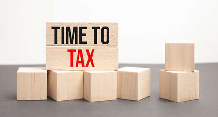 Tax concept with wooden blocks on table