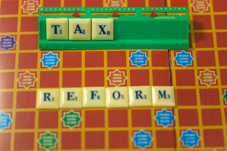 Alphabets on square coins used to depict the the word TAX REFORM