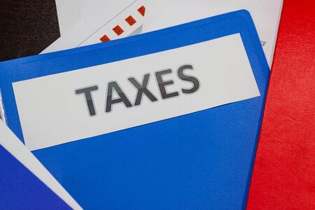Folder Tax documents and paper files on table concept Annual tax payment