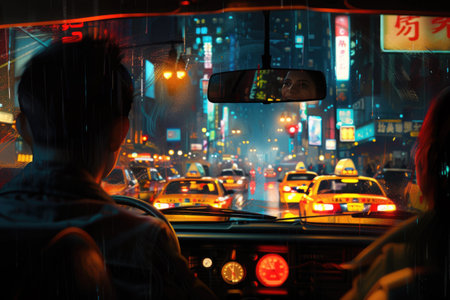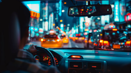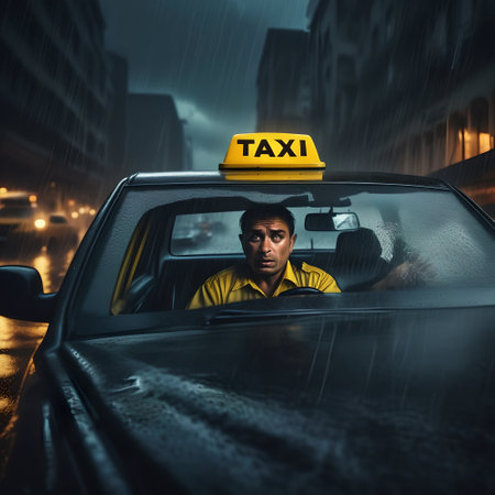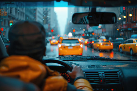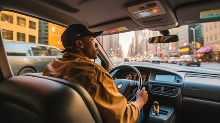 A taxi driver navigating through city streets