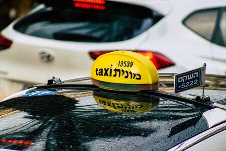 Tel Aviv Israel July 11, 2019 View of traditional Israeli taxi rolling in the streets of Tel Aviv in the afternoon