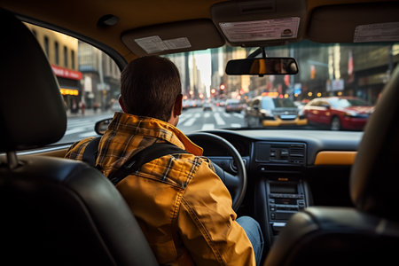 taxi driver in the front seat, back view. ai generative