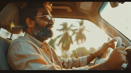 Indian man in car smiling
