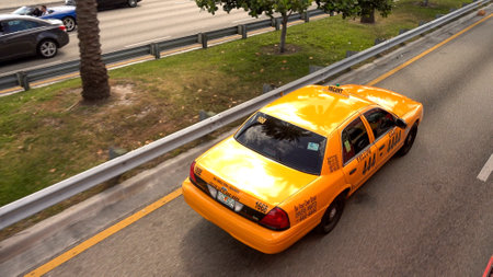 A yellow taxi cab on the way to Miami - MIAMI, USA APRIL 10, 2016
