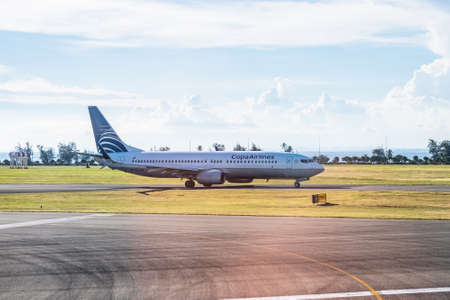 Panama 18.11.19 COPA central american Airline airplane jet starting on the airport ready for takeoff