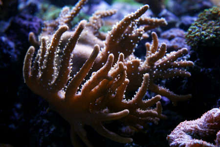 A close-up of a coral in an aquarium, saltwater aquarium.