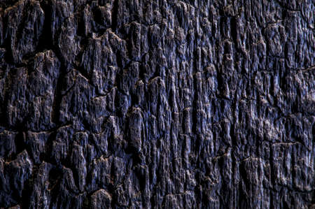 Background, black charred timber, coal after fire, abstract and in cracks of charcoal.