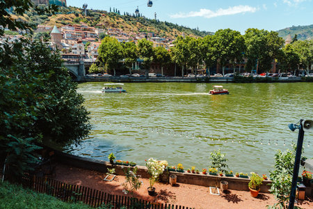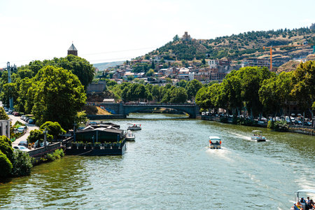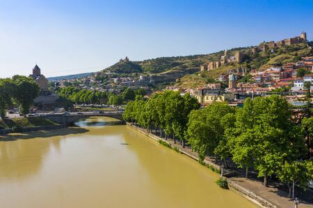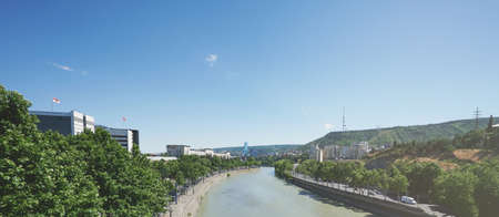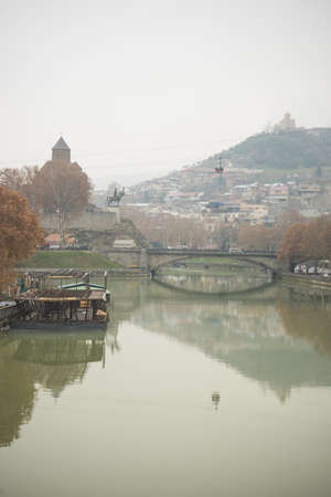 Beautiful view of Kura river from a bridge in Tbilisi, Georgia