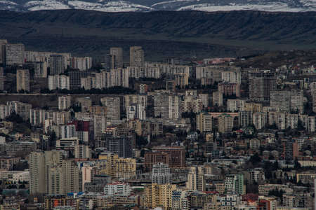 Aerial Cityscape of Tbilisi, Georgia, sunset and cityscape of Tbilisi, Georgia, view on the mountains on backround