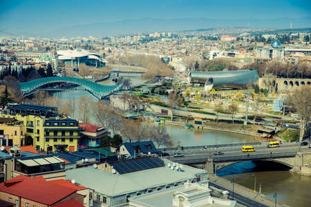 Panoramic view of Tbilisi city from the Narikala Fortress, old town and modern architecture