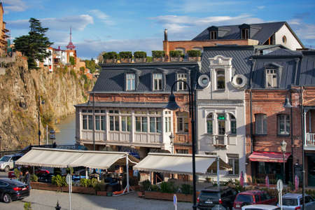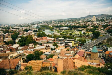 Tbilisi, Georgia - October 21, 2019: Top view on the old part of the city Tbilisi in Georgia in a summer or autumn day