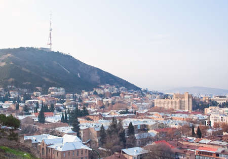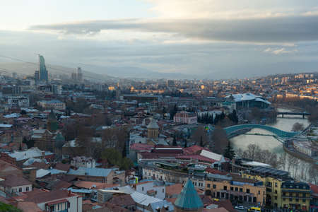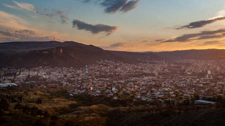 Tbilisi, Georgia - 23 March 2016: panoramic view of the georgian capital at sunset