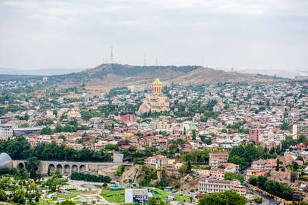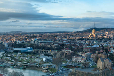 Tbilisi, Georgia - september, 2019 Panoramic view of Tbilisi city, old town and modern architecture