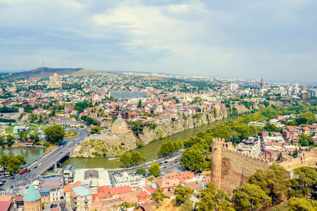 TBILISI, GEORGIA - October 2017: Aerial view of Old Tbilisi.