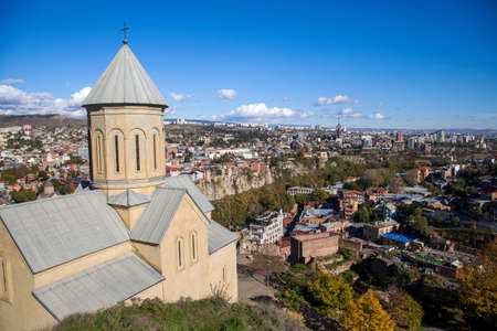Georgia, Tbilisi - November 17, 2020: Metekhi church in Tbilisi.