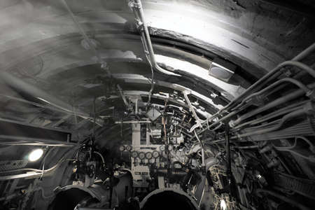 Detailed view of valves and pipes in old submarine