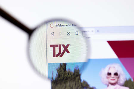 Los Angeles, California, USA - 20 March 2020: TJX company logo on website page close-up on screen, Illustrative Editorial.