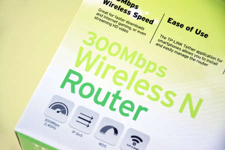 Kharkiv, Ukraine - June 17, 2022: Green box home router TP Link TL-WR845N.