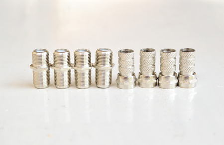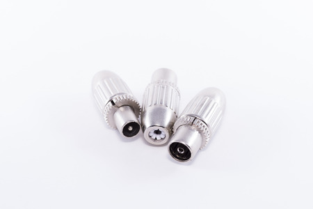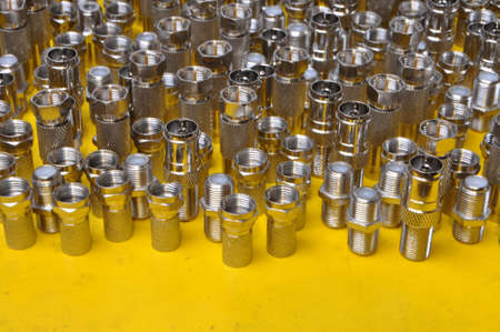Group of coaxial connectors tv closeup