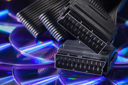 Vintage Scart cable with dvds in the background