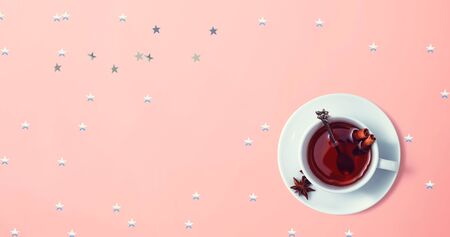 Cinnamon tea with star confetti - flat lay