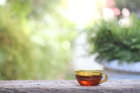 Selective thin focus Cup of tea on a wooden floor