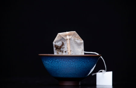 Elegant porcelain cup of tea with a teabag, exuding warmth and tradition