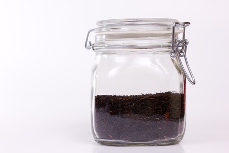 tea glass jar Isolated on black background.