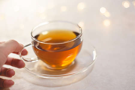 Cup of tea, herabal natural tea. Morning warm tea with eucalyptus