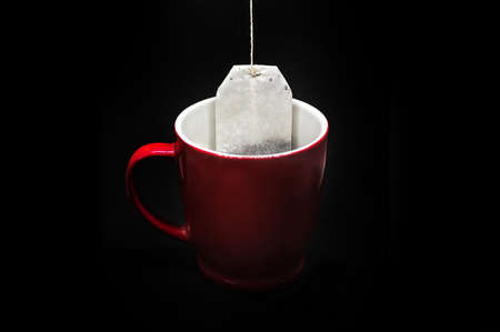 Elegant porcelain cup of tea with a teabag, exuding warmth and tradition